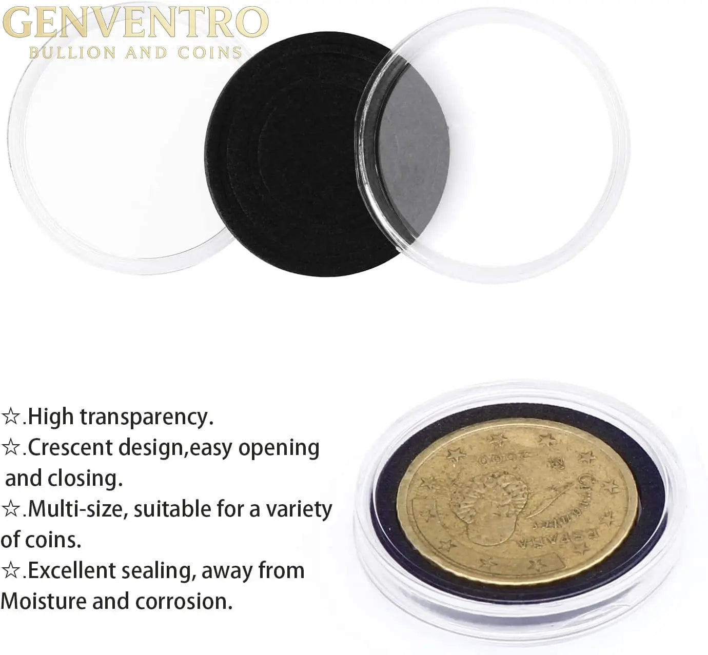 EVA Foam Gaskets: Includes 100 foam inserts in 4 sizes (20mm, 25mm, 27mm, 30mm) to snugly fit most popular coin sizes, preventing sliding and scratching.