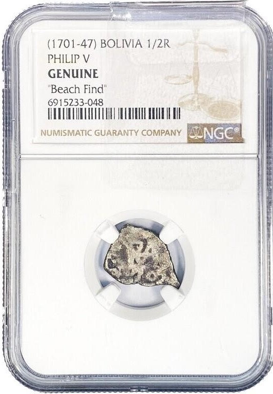 Discover a rare piece of history with the 1701-47 Bolivia 1/2 Real featuring Philip V. This "Beach Find" coin carries a unique story and authenticity that history enthusiasts and collectors will value. Its distinctive aged charm and historical significance make it an exceptional addition to any collection, offering both cultural heritage and investment potential. Don’t miss the chance to own this captivating relic from Bolivia’s past.