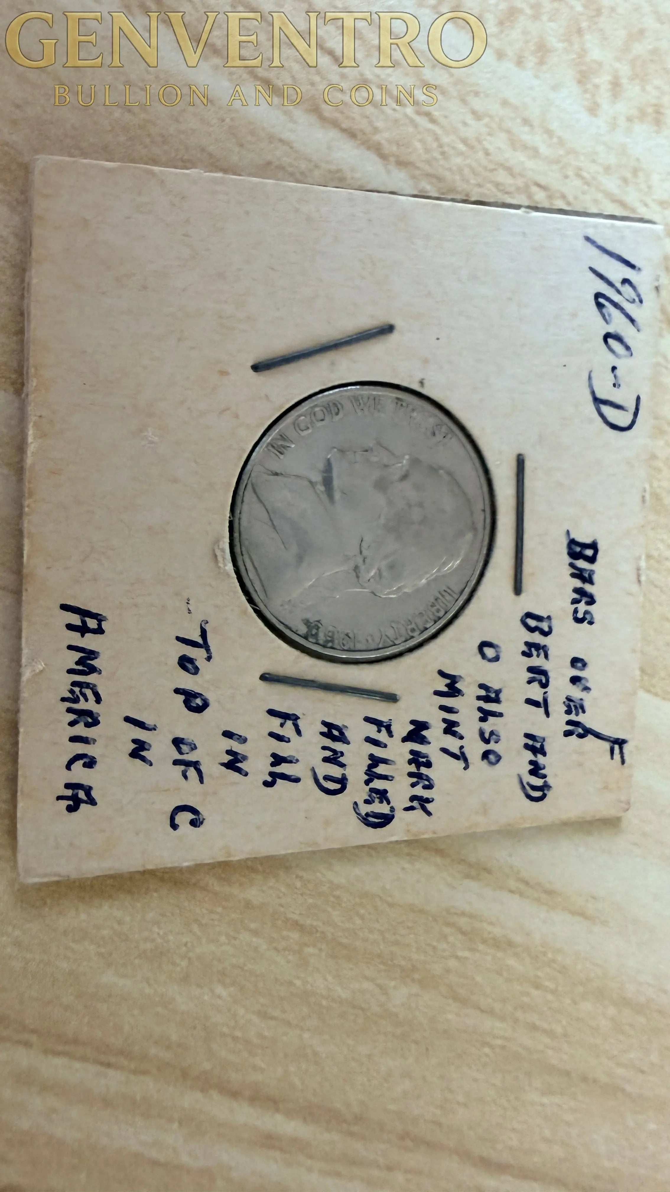 1960-D Jefferson Nickel Bars over Bert - Filled Mint Mark - Error Coin