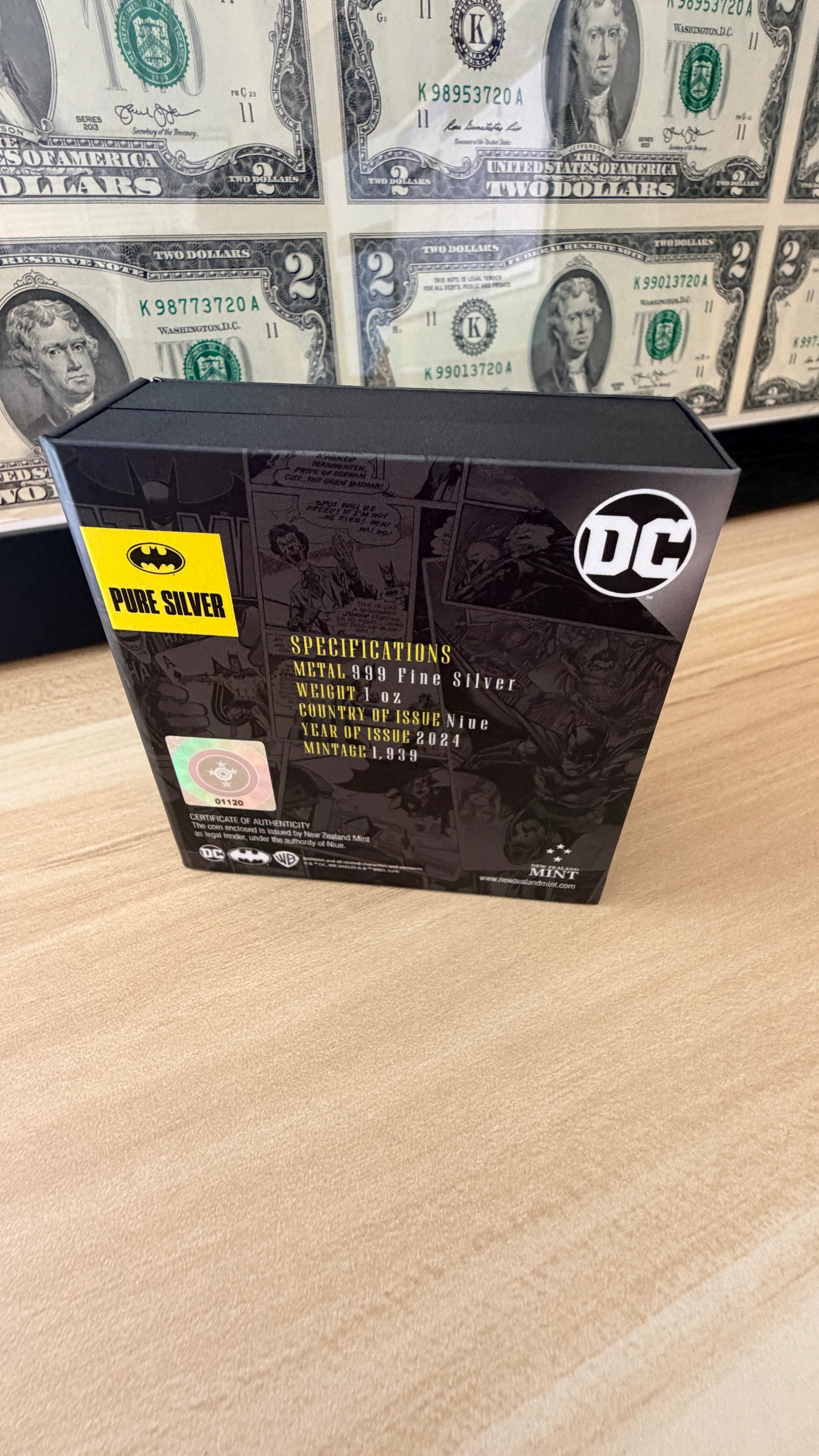 Celebrate iconic superhero legacy with this 1996 Batman Logo 1oz Fine 999 Silver coin from the New Zealand Mint. Crafted in 2024 from pure silver, this collectible piece with a mintage of 1,939 combines striking design with lasting value. Perfect for Batman fans and investors alike, it offers both aesthetic appeal and the tangible security of fine silver. Add a timeless symbol of justice to your collection today.