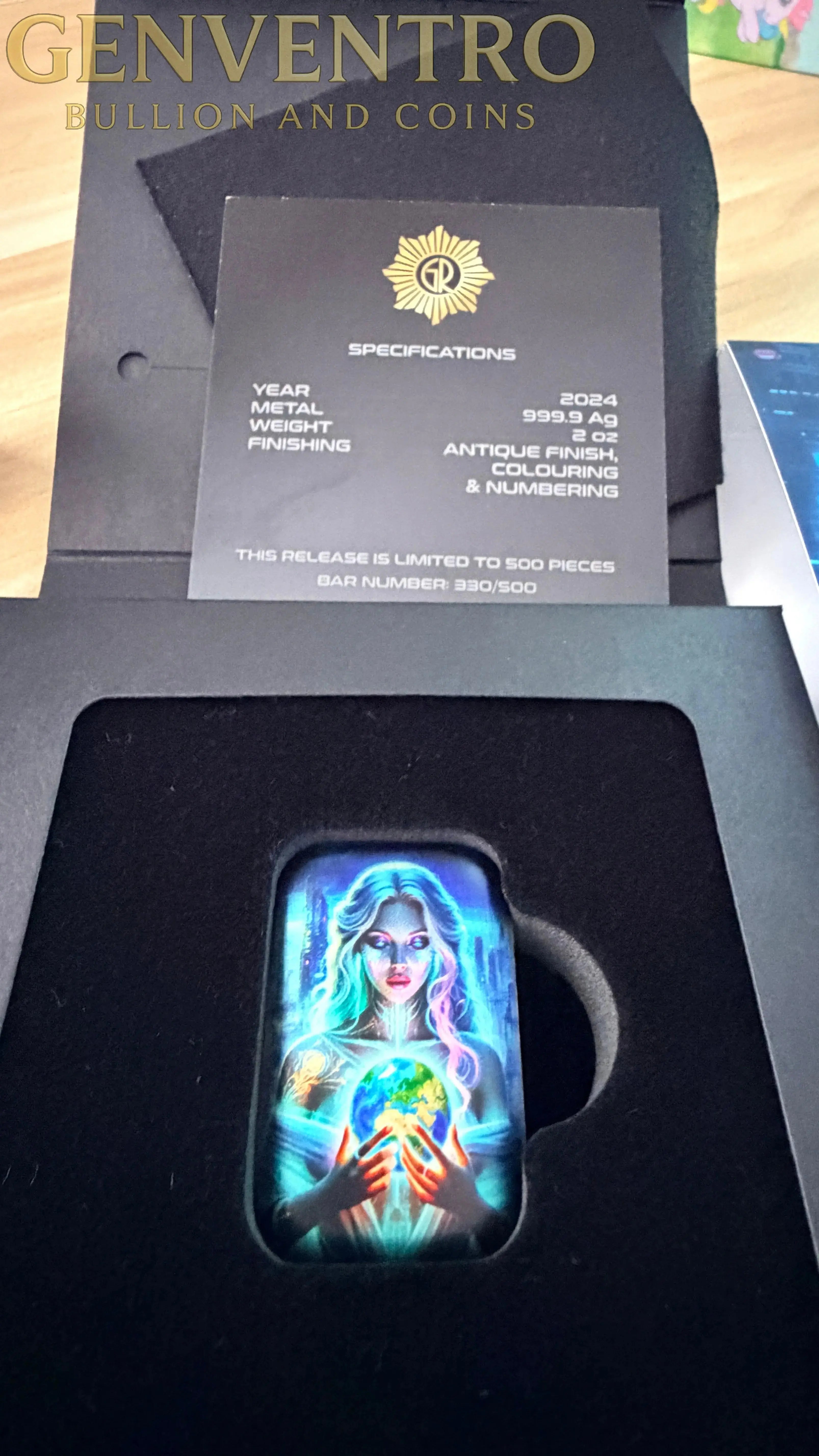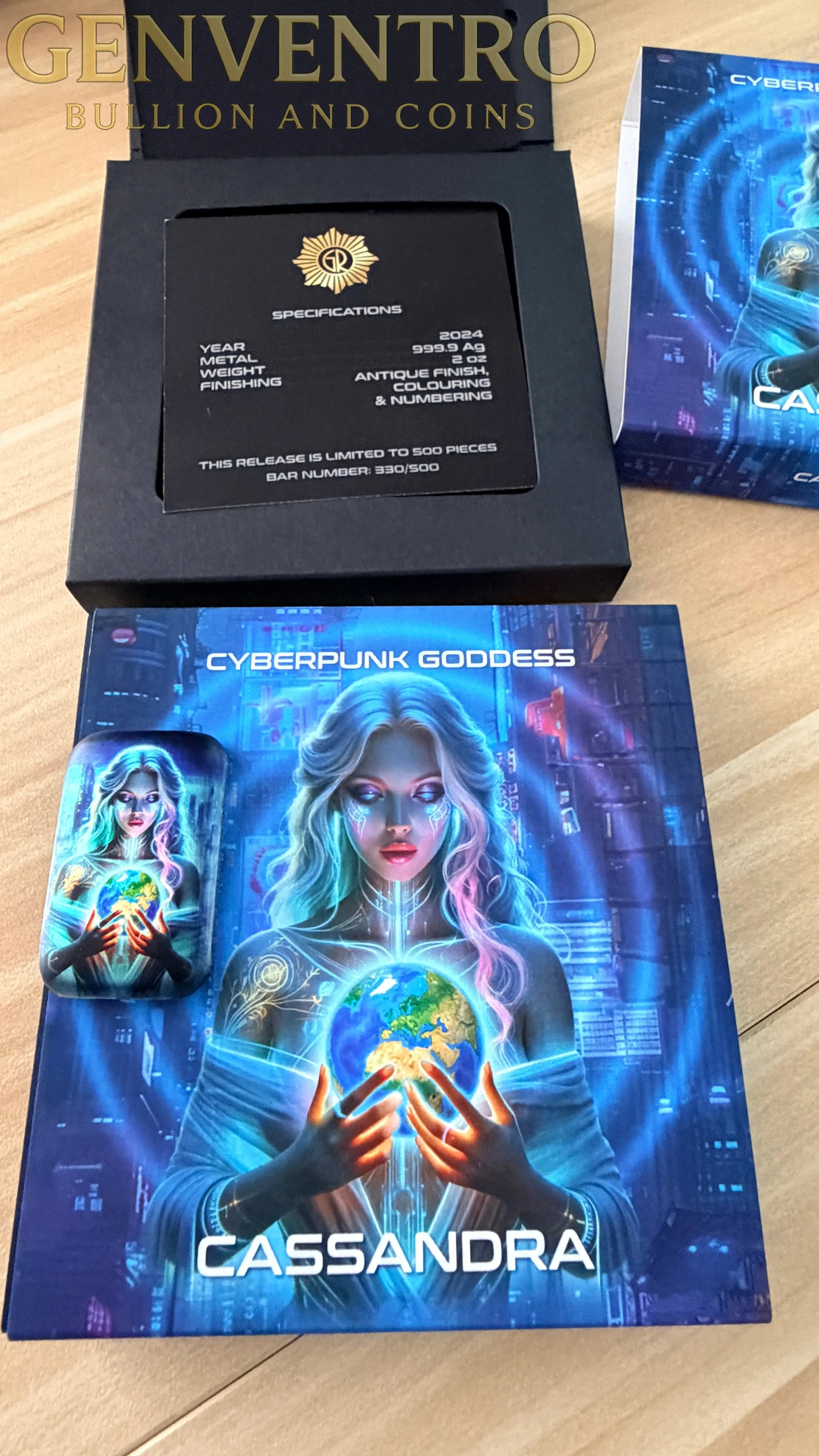 Experience the future of silver investment with the new 2024 Cyberpunk Goddess Cassandra 2 oz Ag999 Silver Premium Cast Bar. These brand new sealed in original mint packaging bars included COA and are crafted from pure .999 fine silver, this expertly cast bar combines modern artistry with exceptional quality. Weighing 2 ounces, it offers a tangible and stylish way to diversify your portfolio while embracing a futuristic aesthetic. Elevate your collection with this distinctive silver bar that blends premium craftsmanship and cutting-edge design for lasting value.