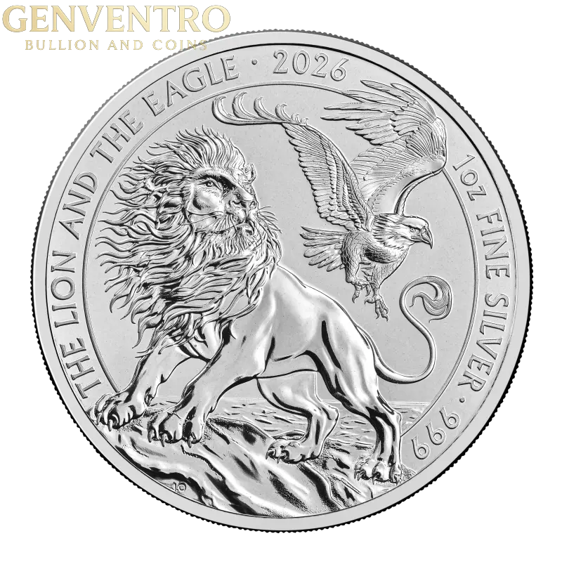 The 2026 Great Britain Lion and Eagle represents a landmark release in modern bullion collecting. Struck in .999 fine silver with a full one-ounce weight, this Brilliant Uncirculated coin showcases the iconic heraldic pairing of the British lion and eagle—symbols of strength and sovereignty.