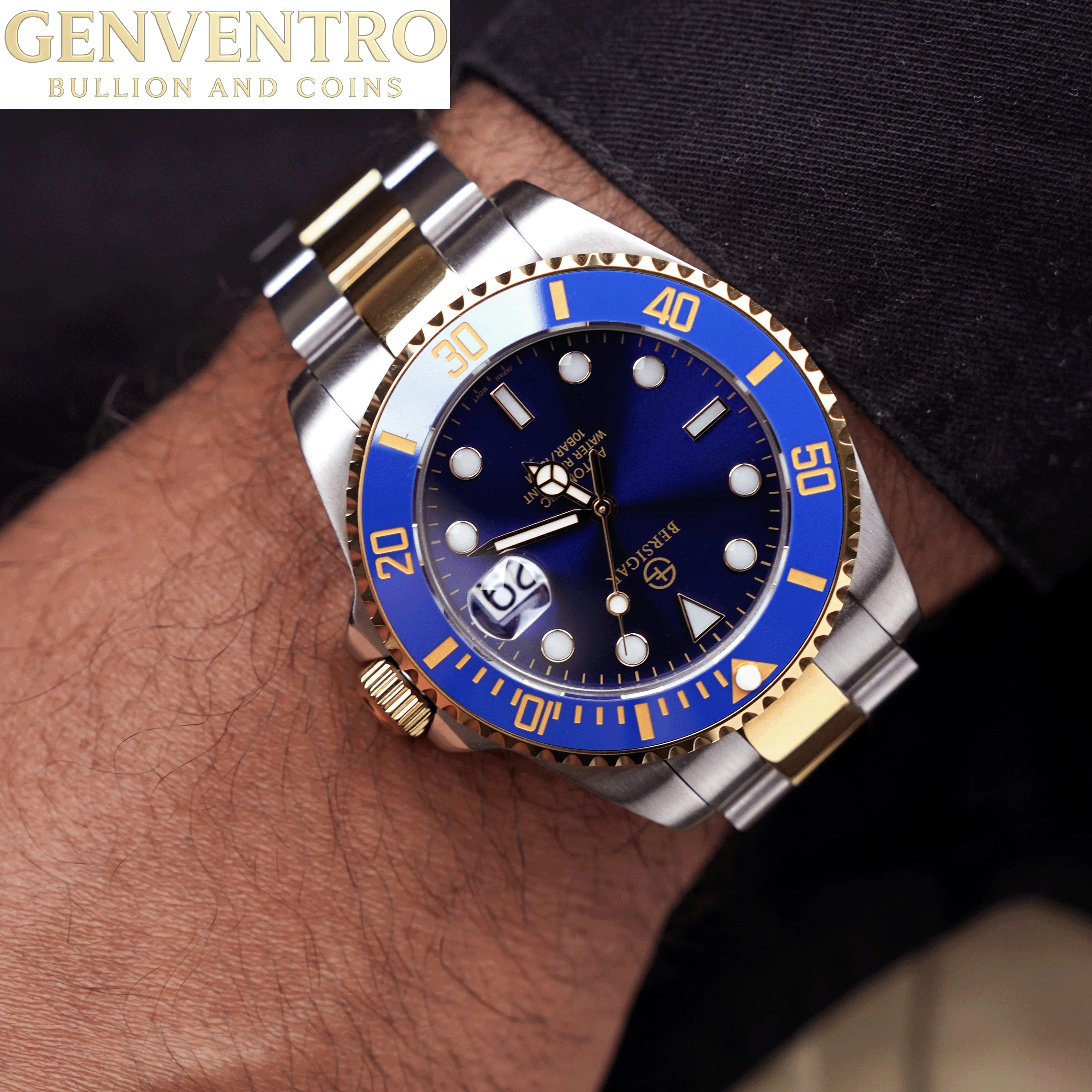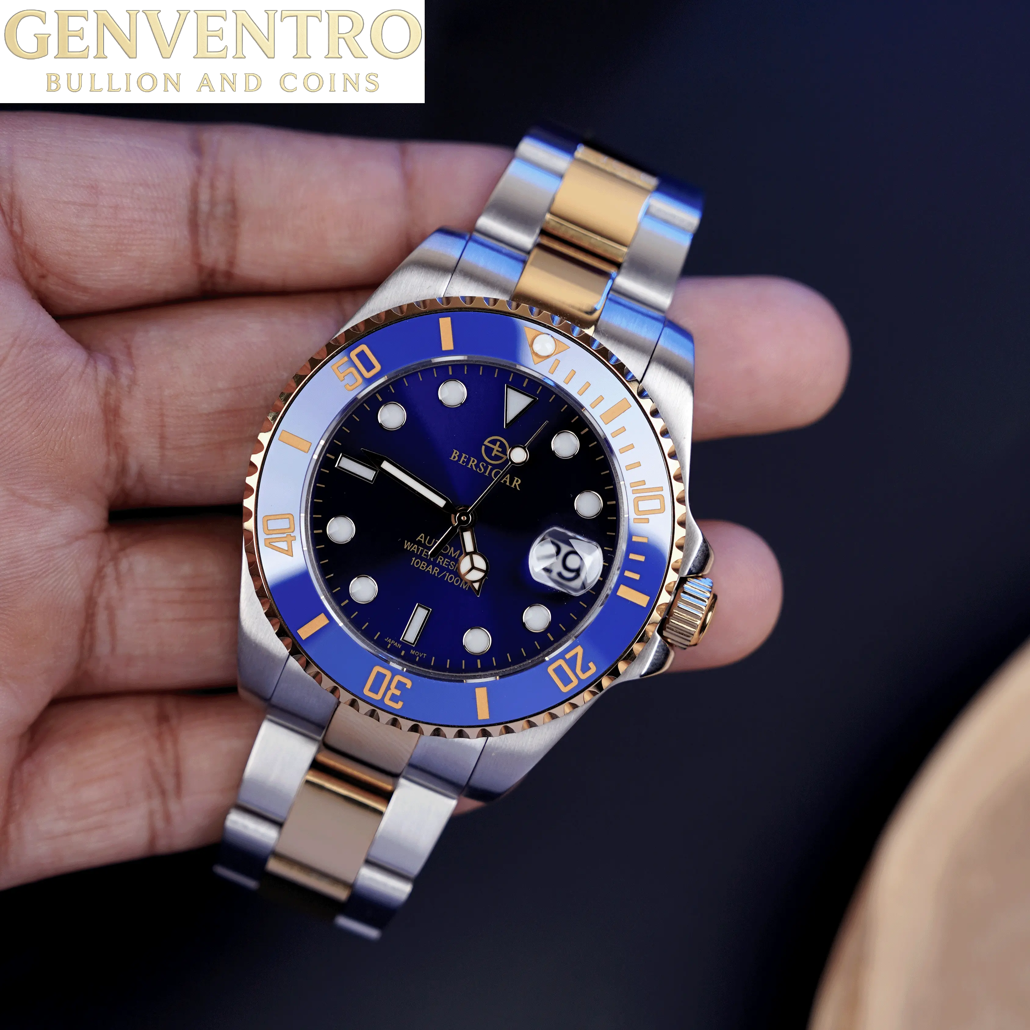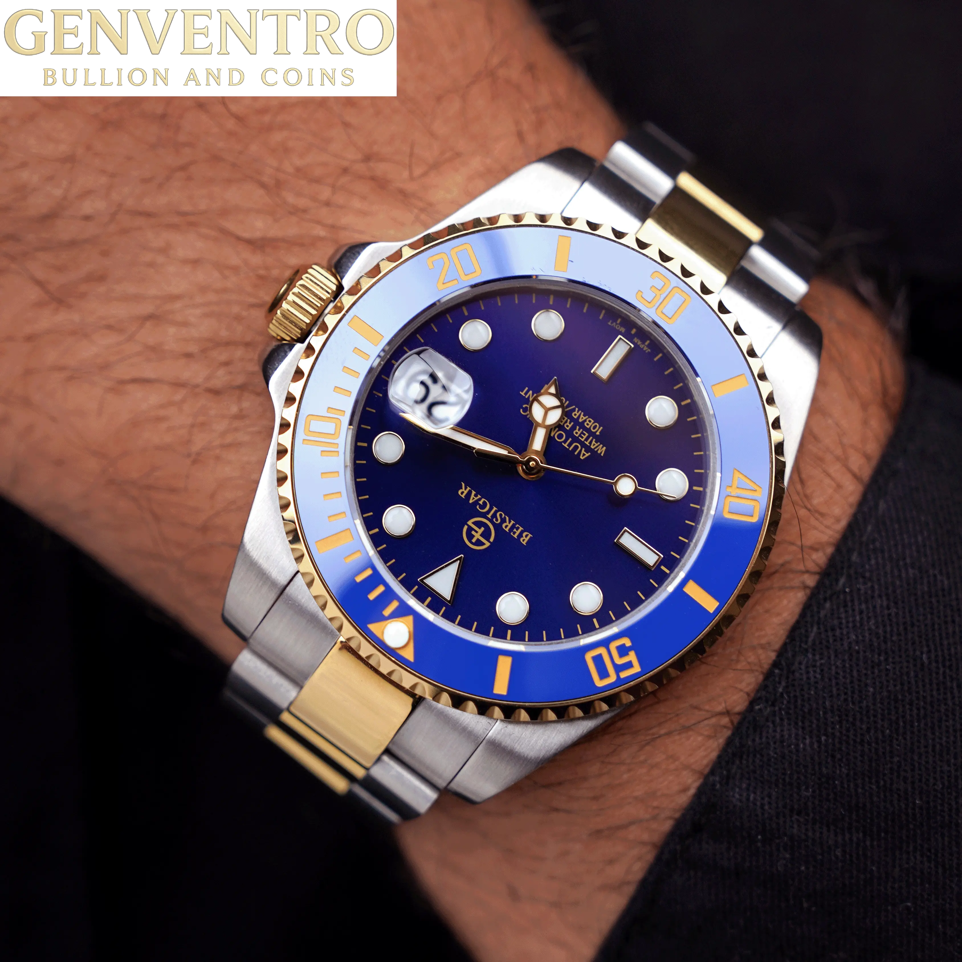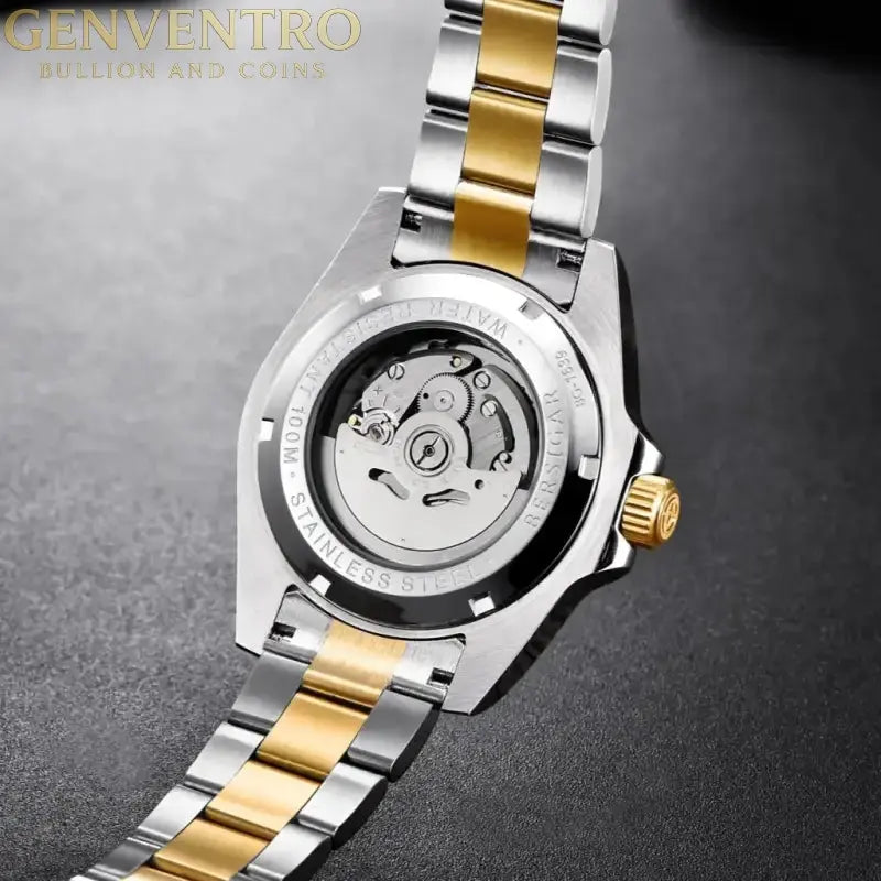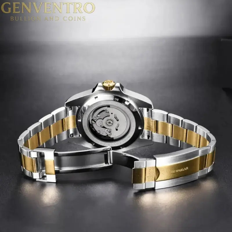 LUXAURA 1639 Premium materials and casual design, Sapphire dial window, full 316L stainless steel construction with screw-down crown, ceramic bezel can be rotated counterclockwise and transparent case back, solid and flexible watchband with classic deployment clasp.