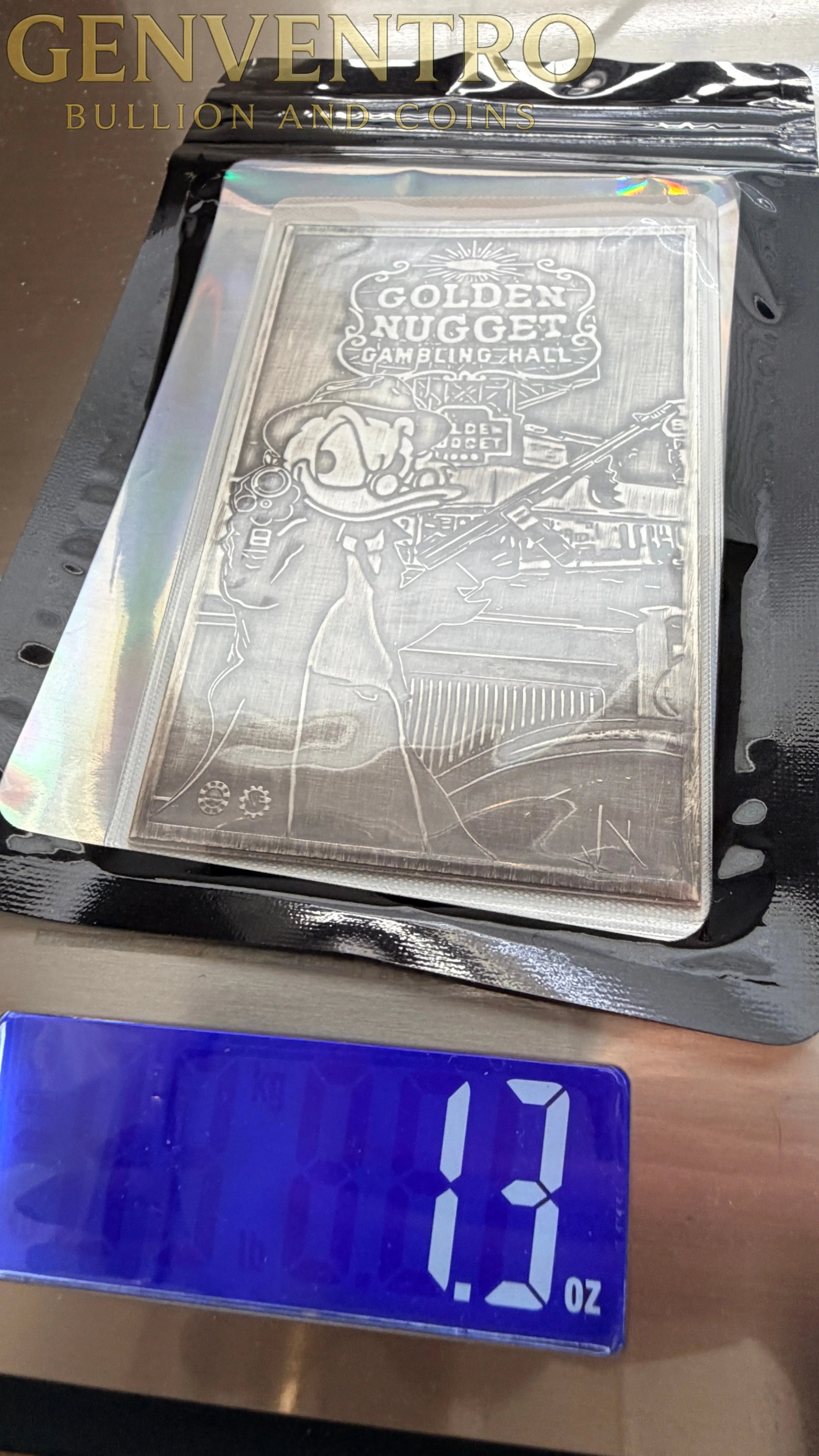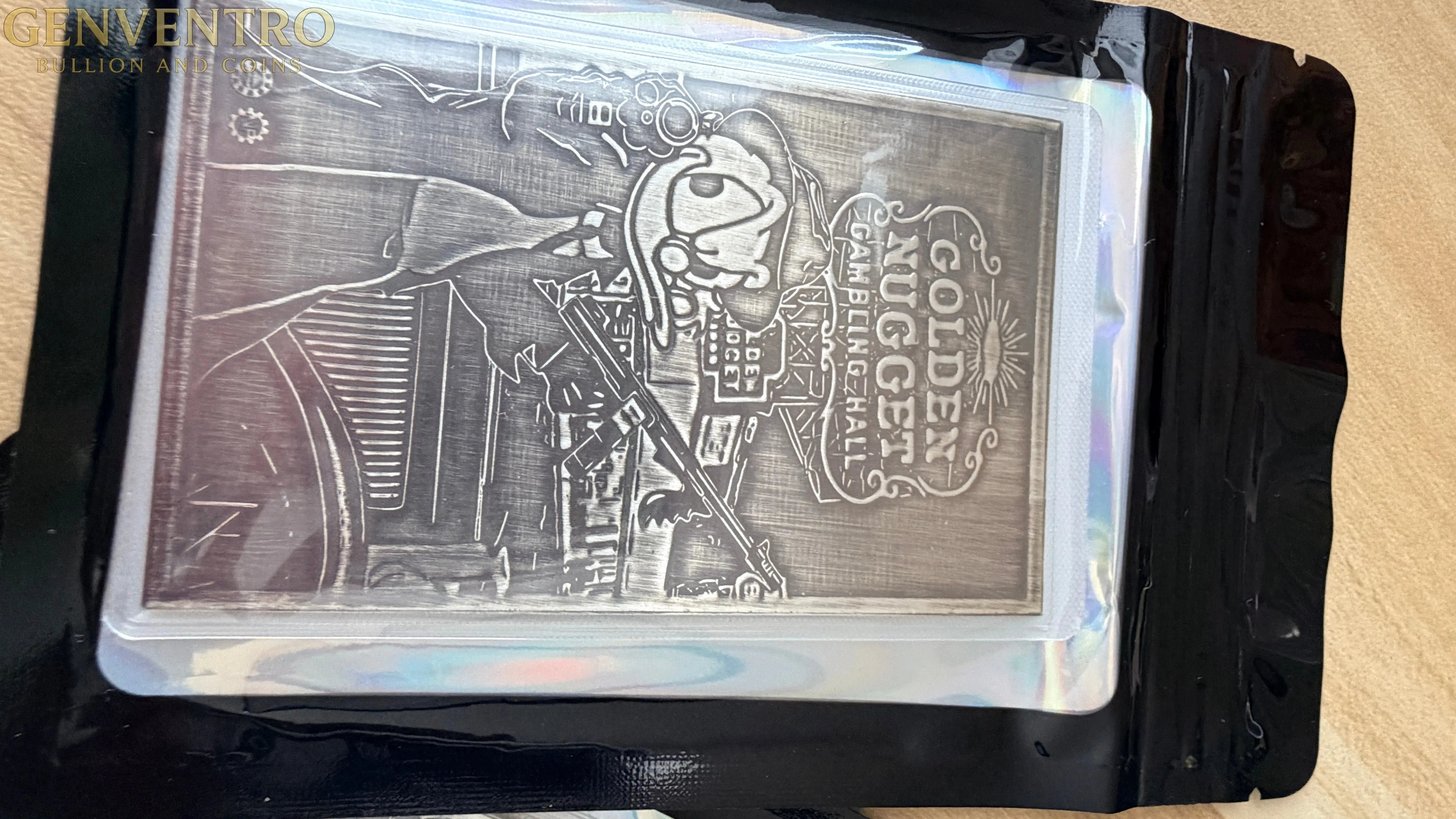 Gangster Scrooge Golden Nugget Gambling Hall 1 oz silver art bar, crafted from 999 fine silver for authentic value and lasting appeal. Sealed in pristine condition, this collectible piece combines numismatic prestige with iconic Las Vegas heritage. Perfect for silver enthusiasts, collectors, and investors seeking tangible assets with historical significance. The intricate design captures the legendary Golden Nugget's glamorous legacy, making it both a smart financial choice and a conversation-starting display piece. Secure your piece of gaming history today.