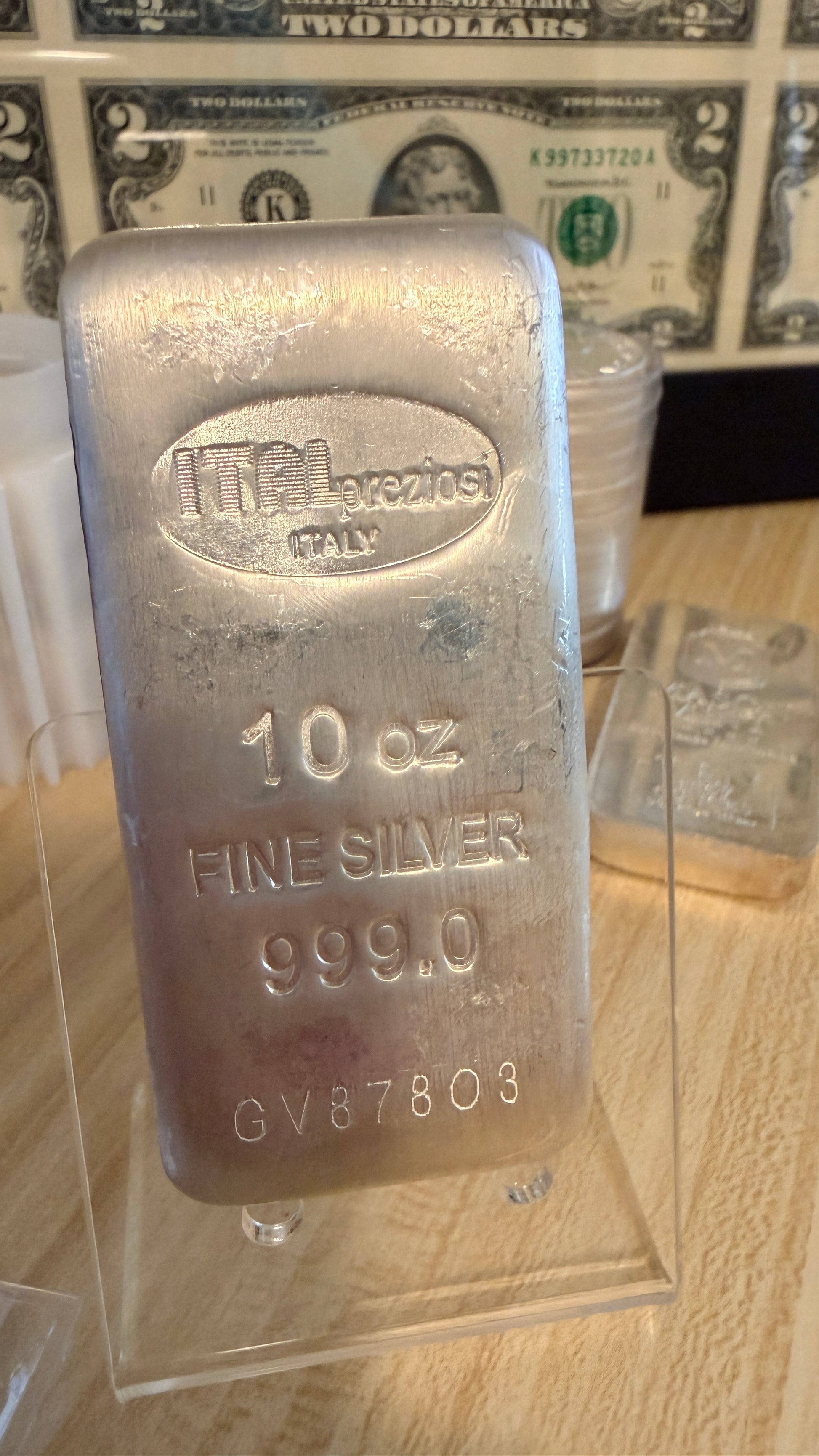 Elevate your investment with the vintage ITALPREZIOSI Italy Silver 10 oz .999 Silver Bar, crafted for purity and reliability. This high-quality silver bar offers excellent liquidity and long-term value, making it a smart choice for diversifying your portfolio. Its generous 10-ounce weight ensures substantial silver content, while the .999 purity guarantees exceptional quality. Secure your wealth confidently with this trusted Italian silver bar.