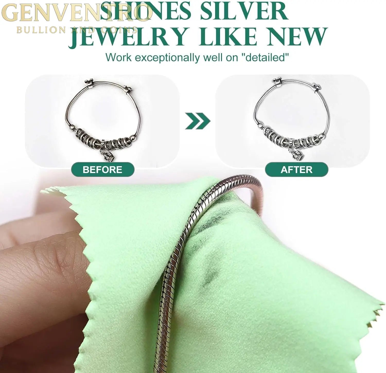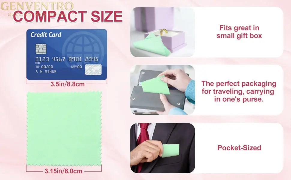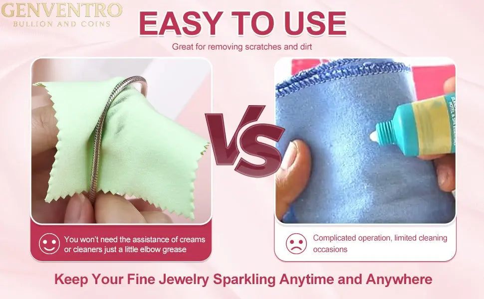 This Polishing cloth can be used to clean silver, gold, platinum jewelry, coins, and other valuables, prevent new tarnishing, and shine your jewelry with ease, no paste, powders, or liquids;