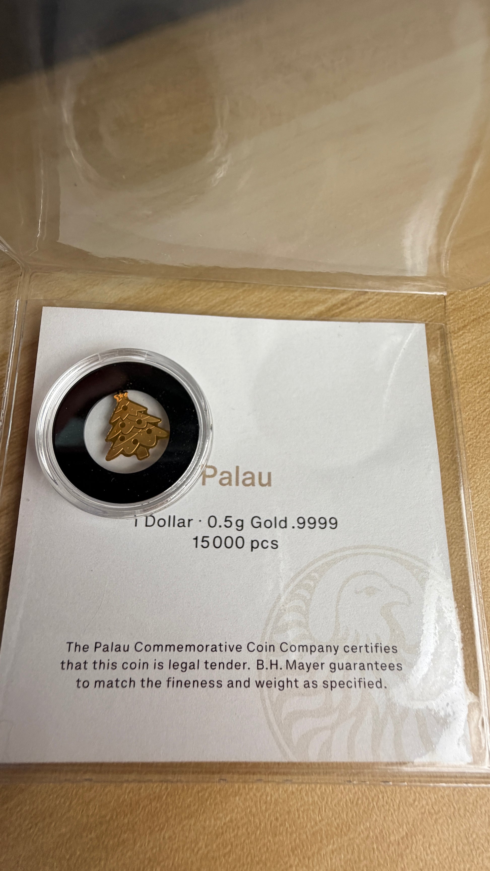 Palau Golden Highlights Christmas Tree .5g 9999 Fine Gold Aassay Card
