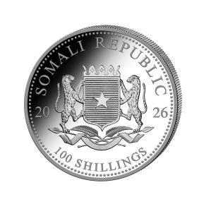 Celebrate the majesty of Africa’s wildlife with the Somalia 2026 African Wildlife - Elephant silver coin. Crafted from 1 oz of pure .9999 fine silver and beautifully gilded, this coin showcases the iconic elephant in stunning detail. A perfect collectible for investors and nature lovers alike, it combines enduring value with exquisite artistry. Secure this limited-edition treasure to enrich your collection and honor wildlife conservation.